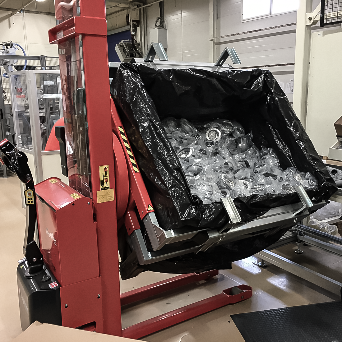 El Rotator con soportes para cajas no ajustables (soportes para cajas como equipamiento opcional) es la solución perfecta cuando no se tengan que manipular cajas de diferentes anchuras.